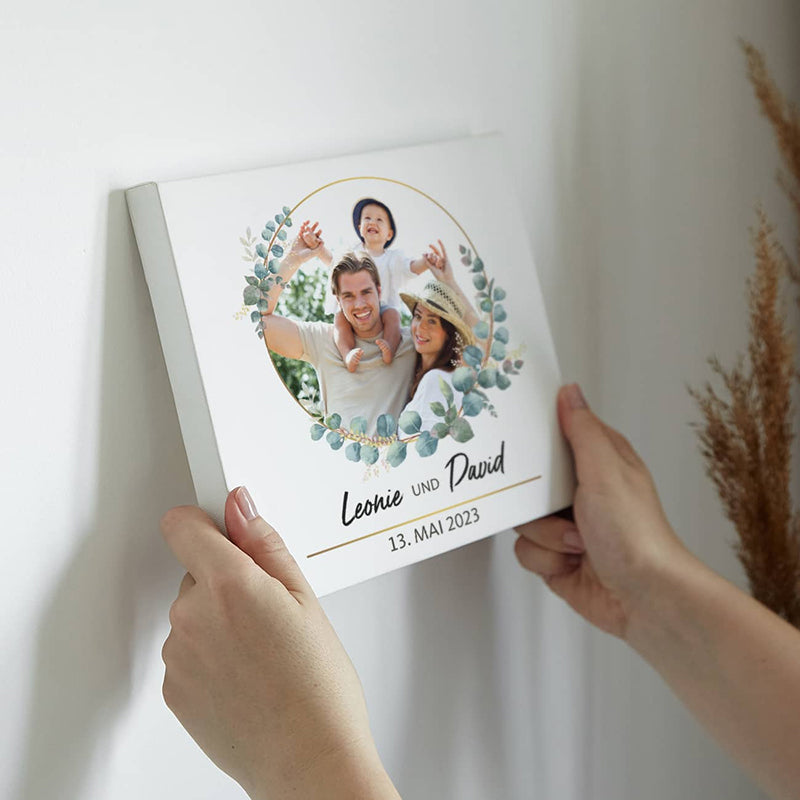 Foto-Banner zur Hochzeit mit Namen, Datum und Eukalyptus-Motiv 160x80cm