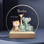 Nachtlicht Safari Tiere mit Name und Datum, LED Lampe als Geschenk für Babys und Kinder