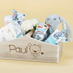 Selbst nach dem Auspacken kann die persönliche Geschenkverpackung weiterhin als Erinnerungskiste dienen, beispielsweise für Fotos, Kleidung, Spielzeuge und andere Lieblingsdinge des Babys. Oder möchten Sie lieber eine Holztruhe mit Gravur für ein kleines aber genauso eindrucksvolles Geschenk überreichen?