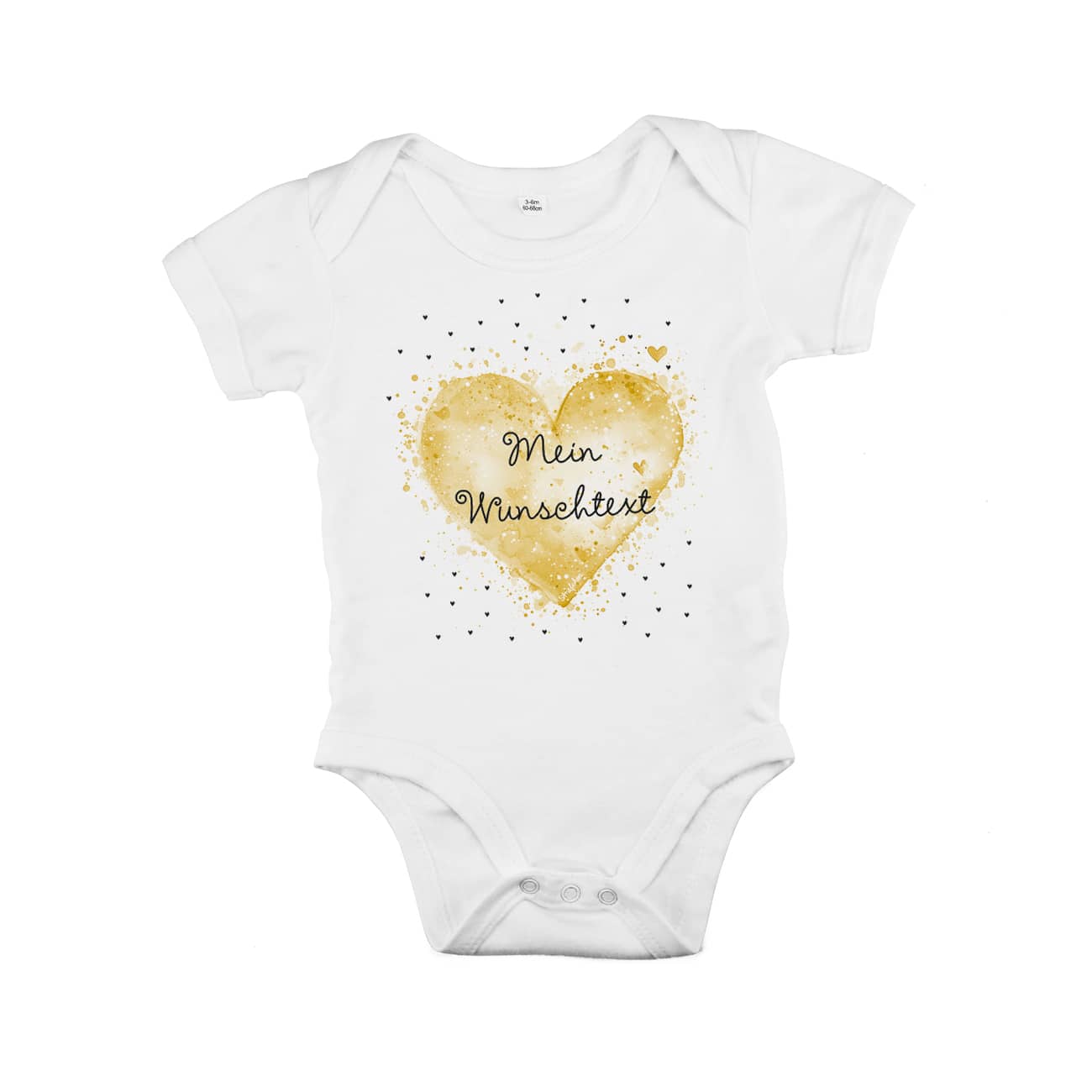 Machen Sie die Ankunft eines neuen Babys noch besonderer mit unserem weißen Babybody, der mit einem großen Herz bedruckt ist. Dieser niedliche Body bietet Platz für Ihre persönliche Botschaft, die in zwei Zeilen Text nach Wunsch gestaltet werden kann. Ein perfektes Geschenk zur Geburt, das Sie individuell anpassen können, um eine ganz besondere Erinnerung zu schaffen. Der Babybody wird mit einem großen Herz bedruckt, auf welches der Text platziert wird. Lassen Sie Ihrer Kreativität freien Lauf und wählen Sie einen liebevollen Spruch, das Geburtsdatum oder den Namen des Babys. Inspirationen für den Text finden Sie in unseren Produktbildern.
