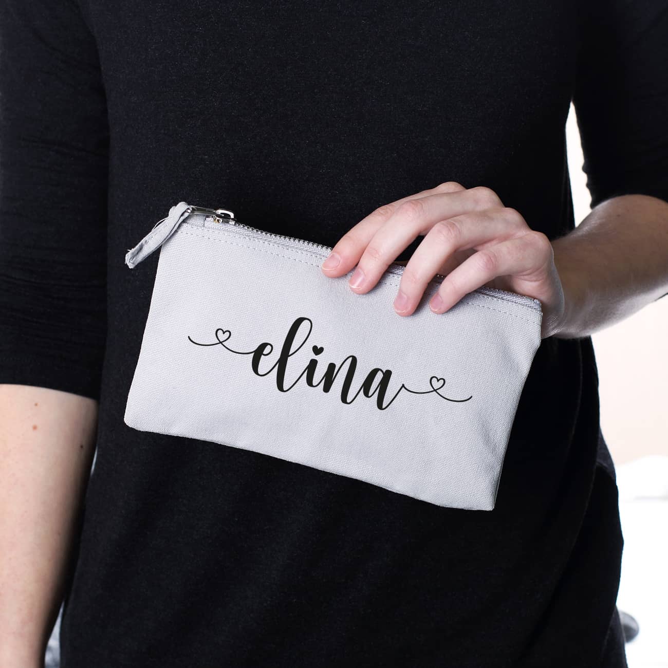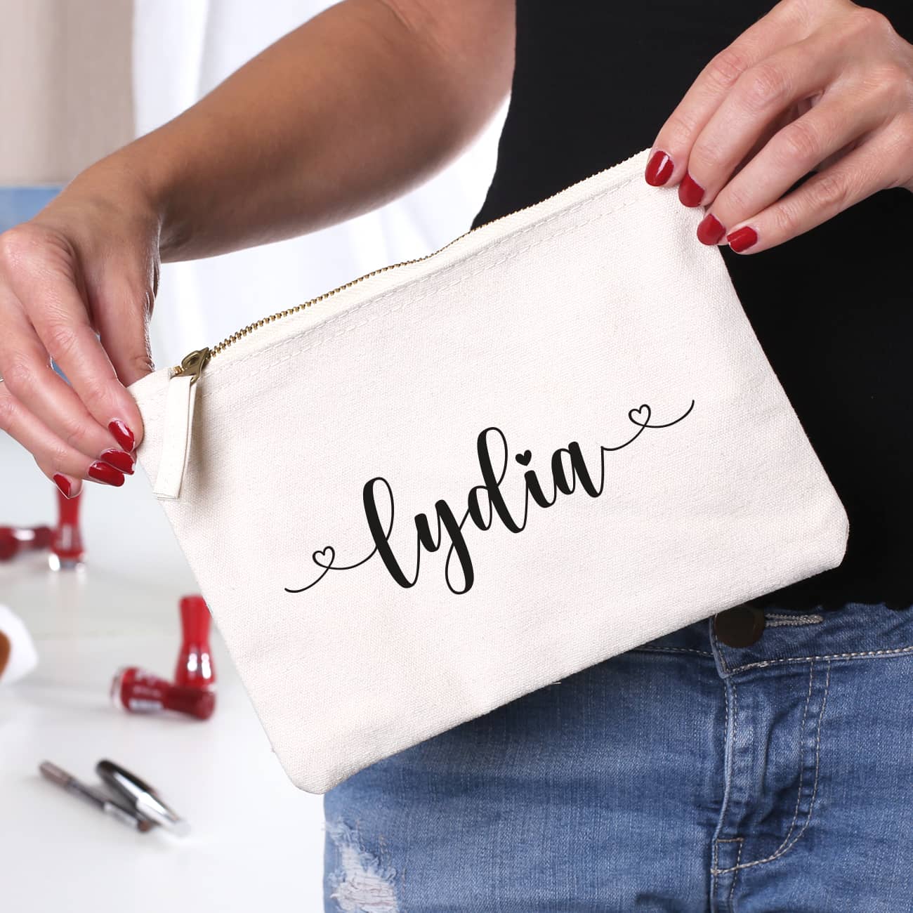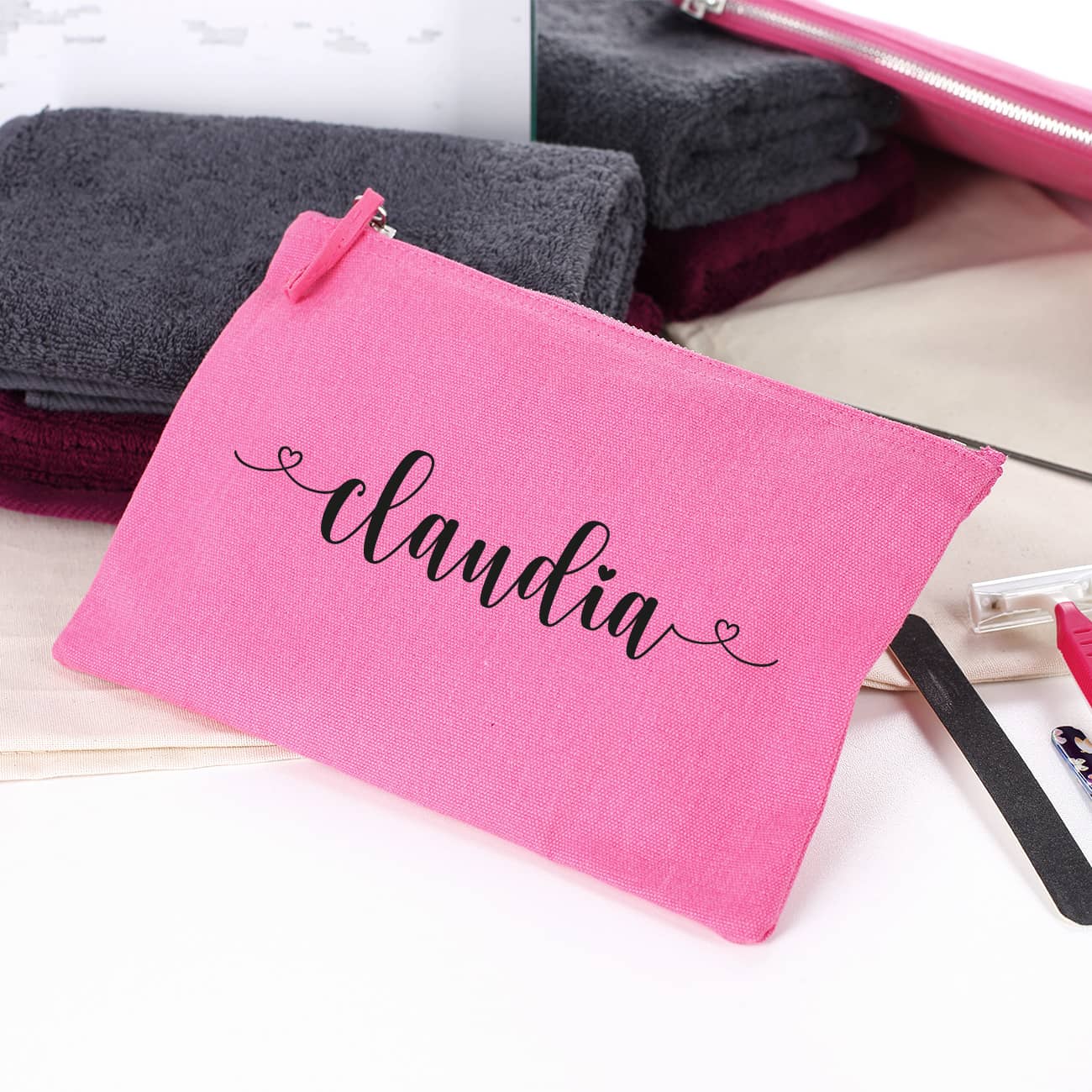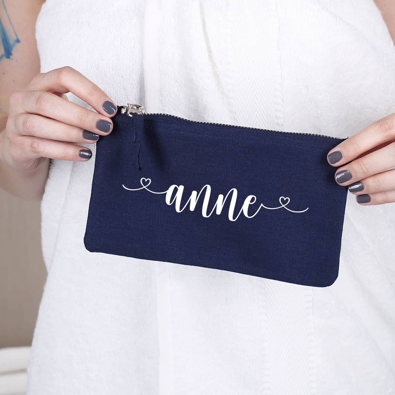 Das Beautycase ist durch den individualisierten Druck ein besonders persönliches Geschenk, das an vielen Anlässen eine schöne Überraschung ist. Erhältlich ist die Kosmetiktasche in den Farben Schwarz, Natur, Grau, Dunkelblau und Pink. Je nachdem ob der Untergrund hell oder dunkel ist, variiert die Schriftfarbe, damit der Name deutlich zu lesen ist. Überreichen Sie die Beautytasche als ValentinstagsgeschenkMuttertagsgeschenk oder Geschenk an die beste Freundin zu anderen Anlässen. Ebenso kann der Kulturbeutel als kreative Geschenkverpackung benutzt werden, indem Sie die liebsten Kosmetikprodukte der Beschenkten, Geldgeschenke, Gutscheine oder Accessoires hinein legen.