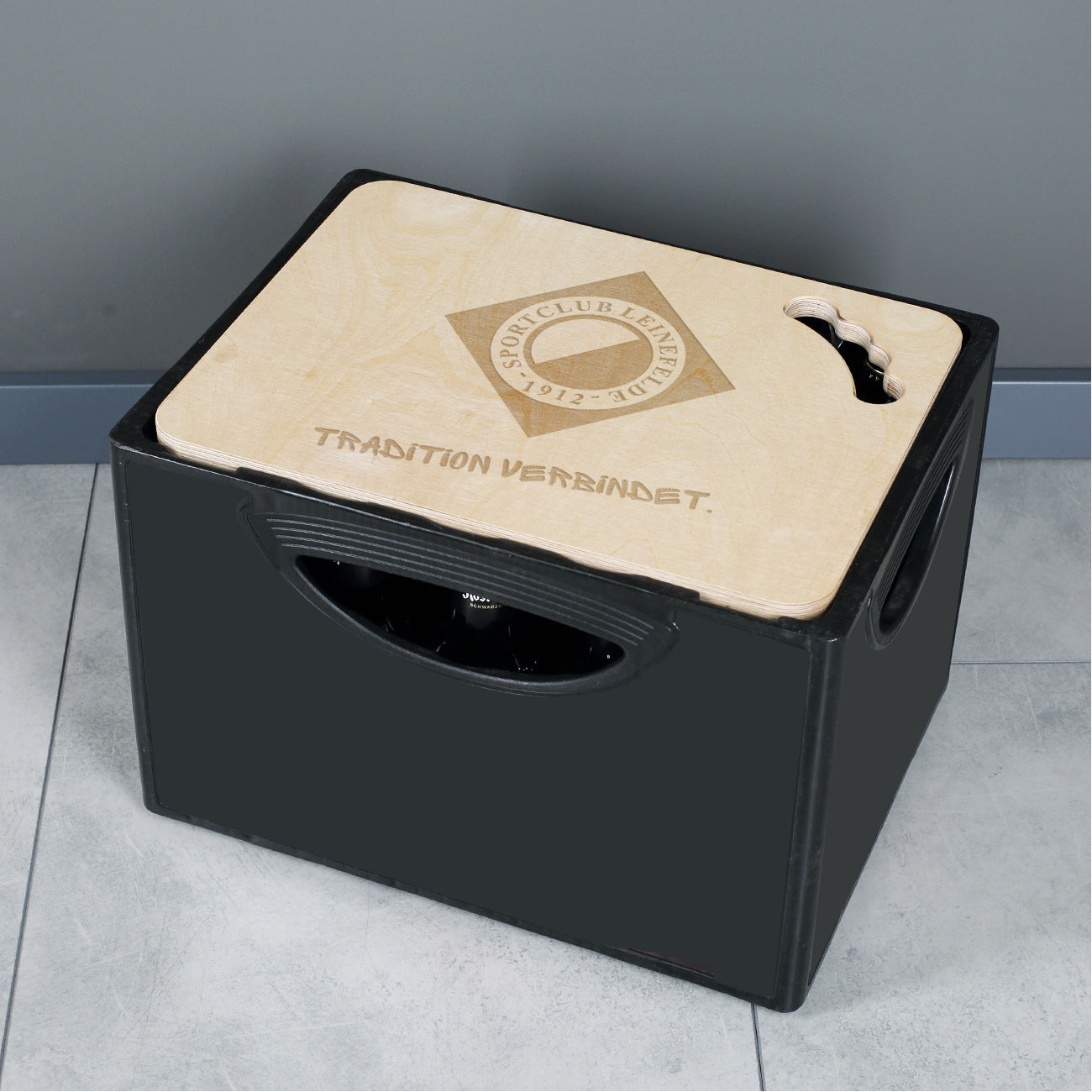 Aus einem einfachen Bierkasten wird mit diesem cleveren Zubehör ein praktischer Sitzplatz und ein echtes Fan-Statement: Der SC Leinefelde 1912 Bierkastendeckel mit einseitiger Gravur des Vereinslogos und dem Slogan „TRADITION VERBINDET.“ ist die perfekte Ergänzung für Spiele, Gartenpartys oder Vereinsfeiern.