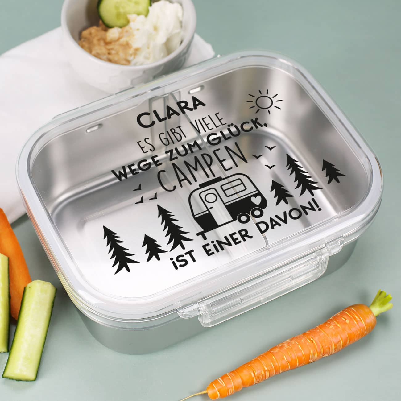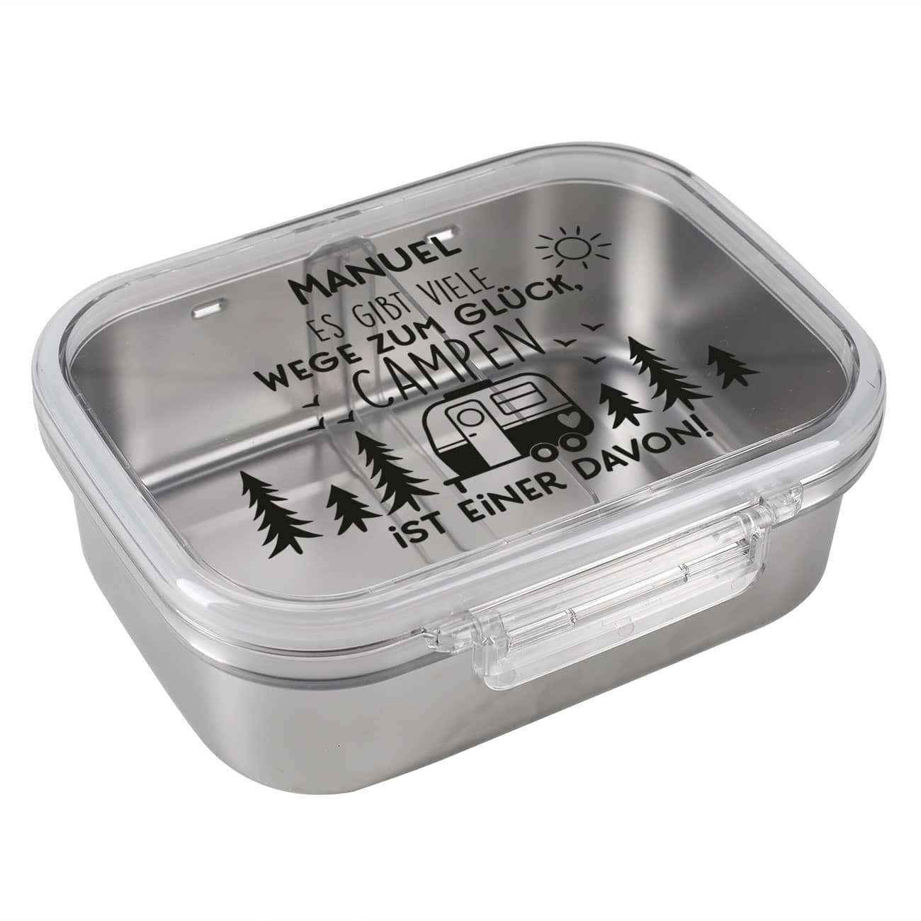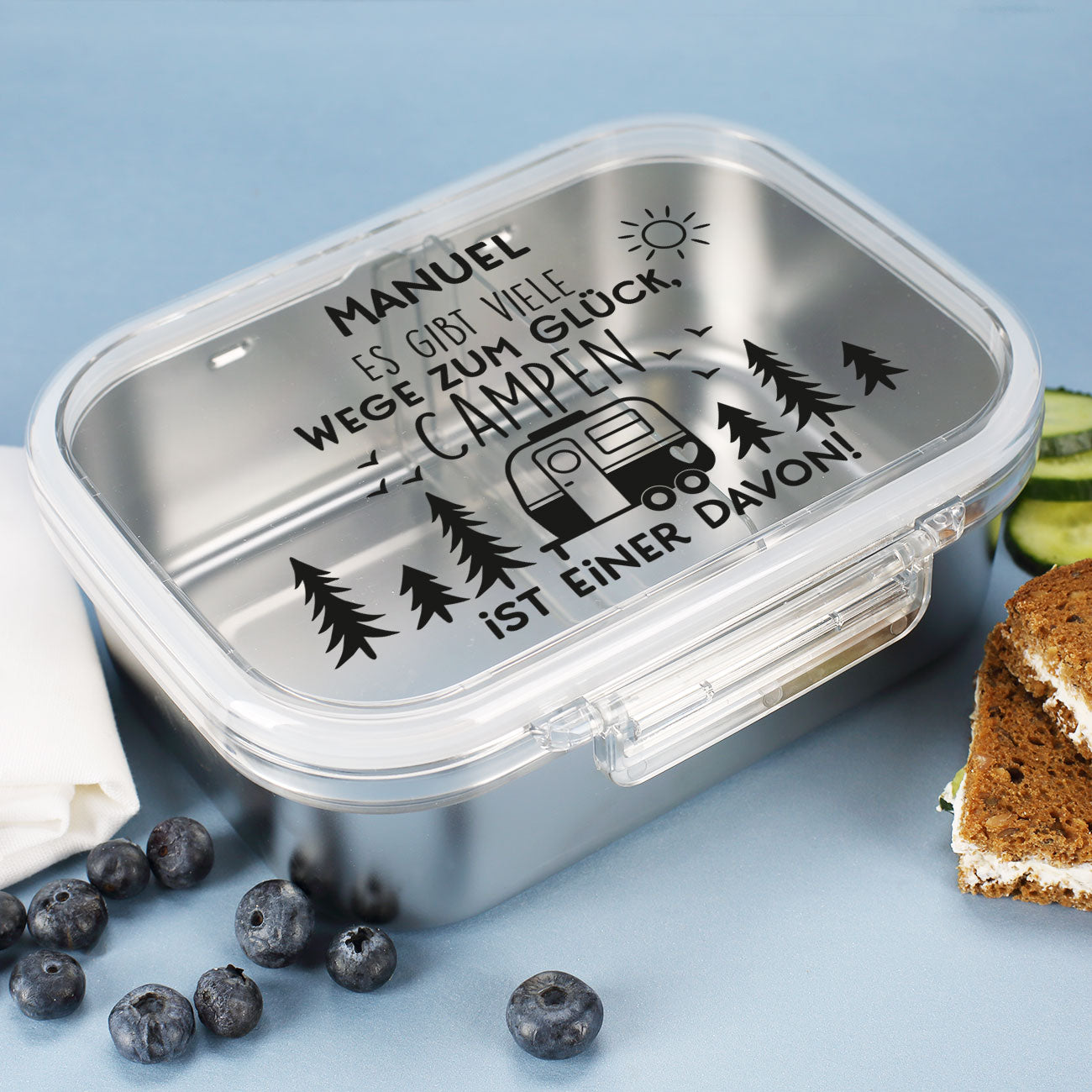 Es gibt viele Wege zum Glück, Campen ist einer davon - Brotdose aus Edelstahl mit Wunschname