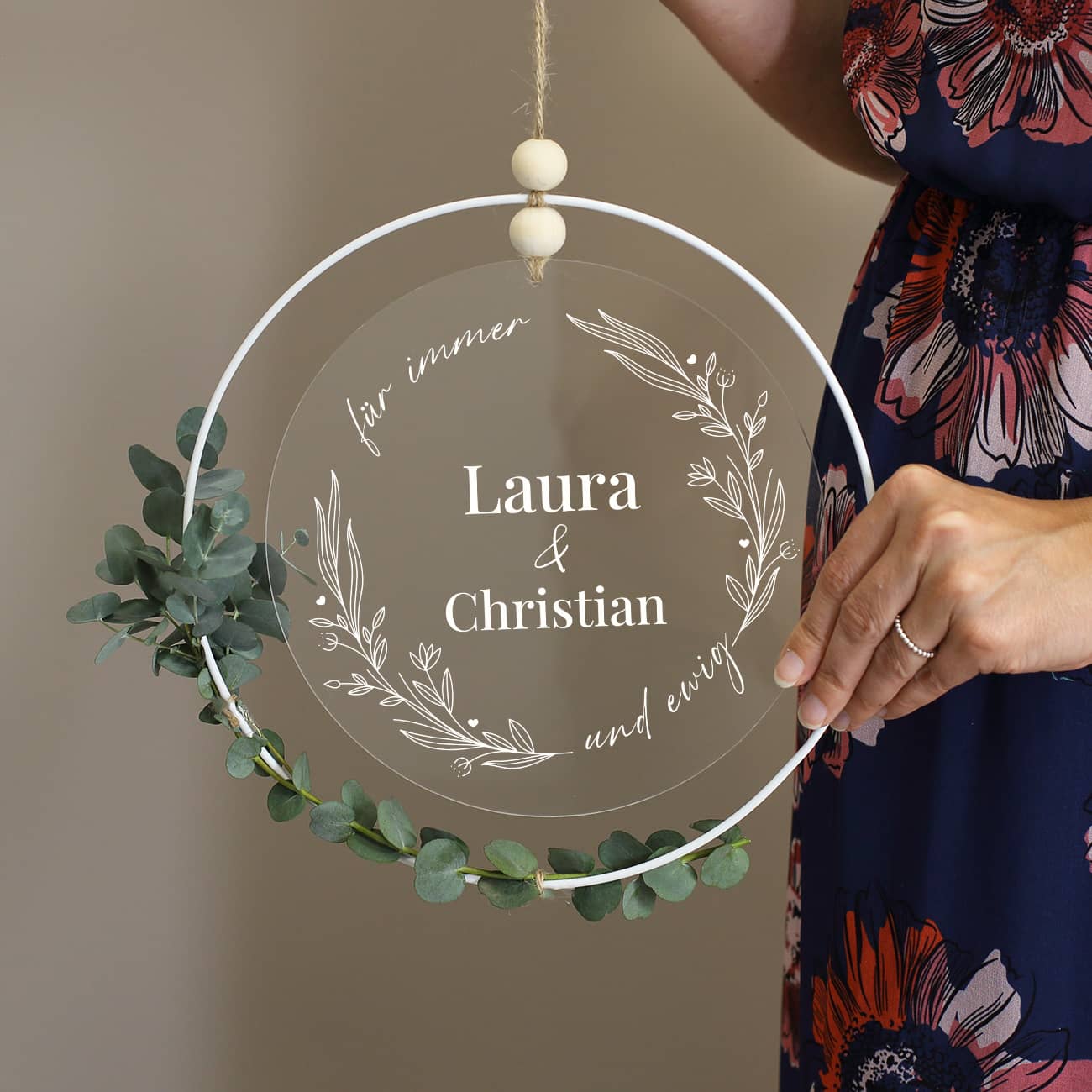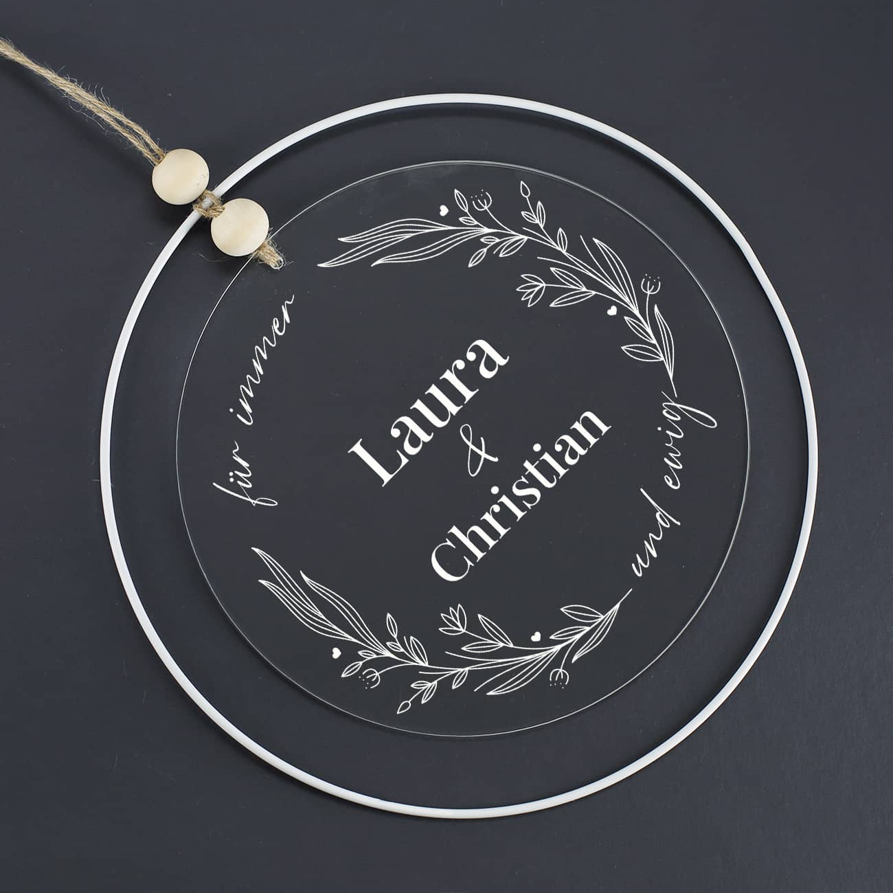 - Individuell personalisierbar: Das Acrylschild kann mit den Namen des Paares und einem besonderen Datum bedruckt werden, um eine persönliche Note zu verleihen.