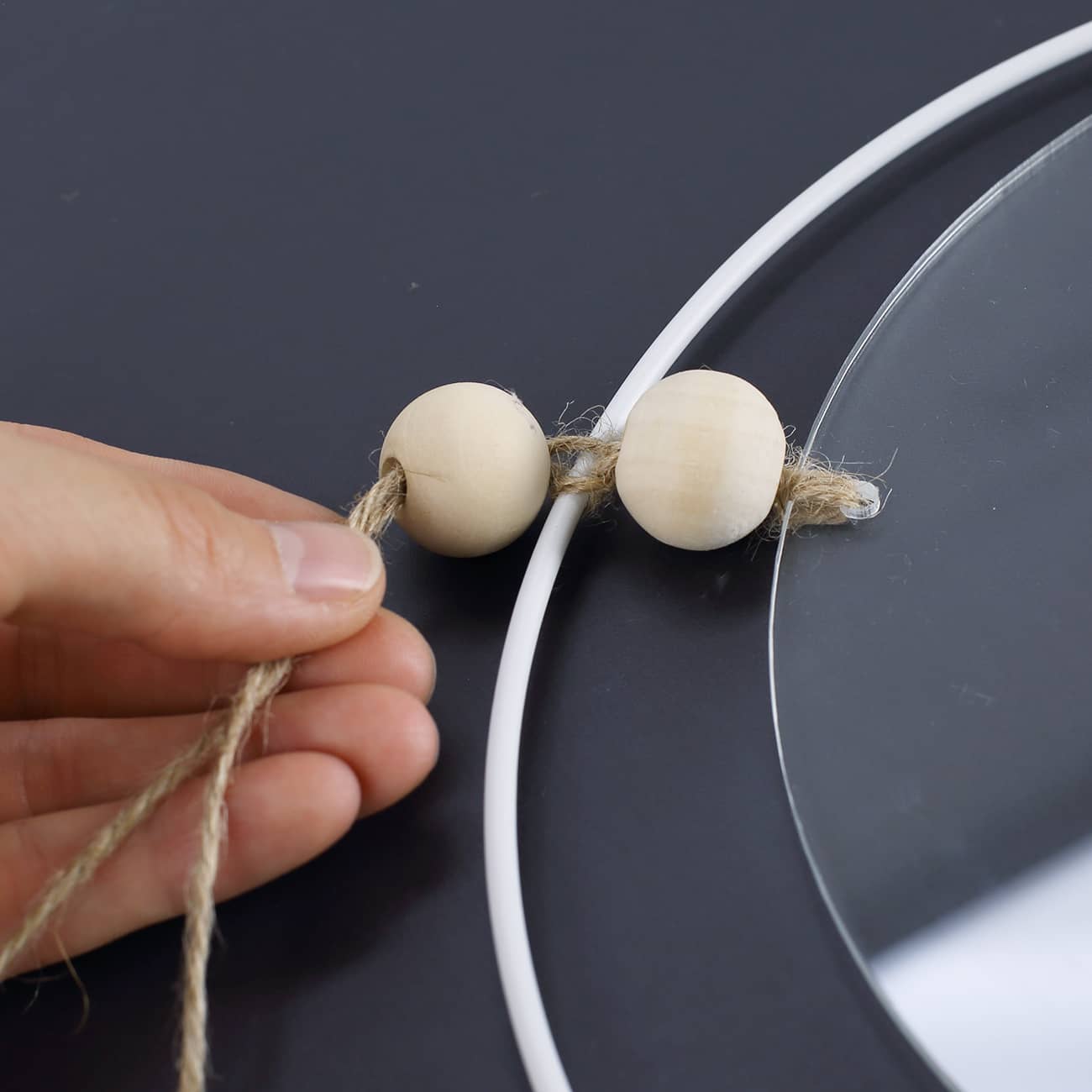 - Hochwertige Materialien: Gefertigt aus robustem Acryl, kombiniert mit einem eleganten Metallrahmen. Das Set enthält zudem Holzperlen und Juteband für die Aufhängung.