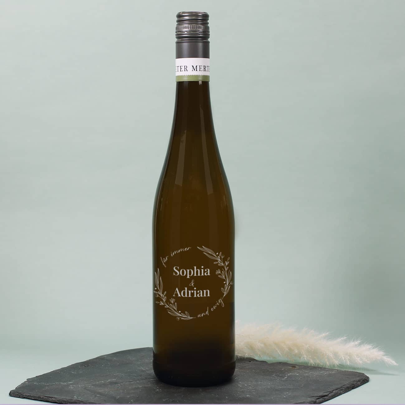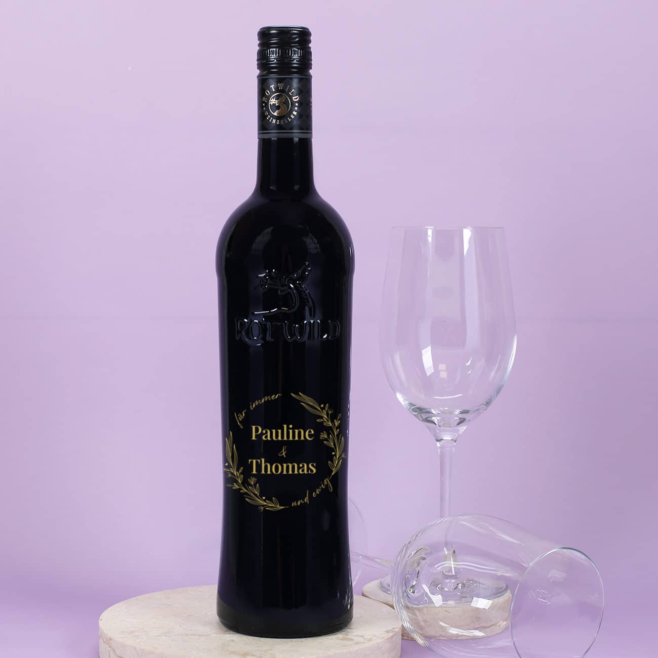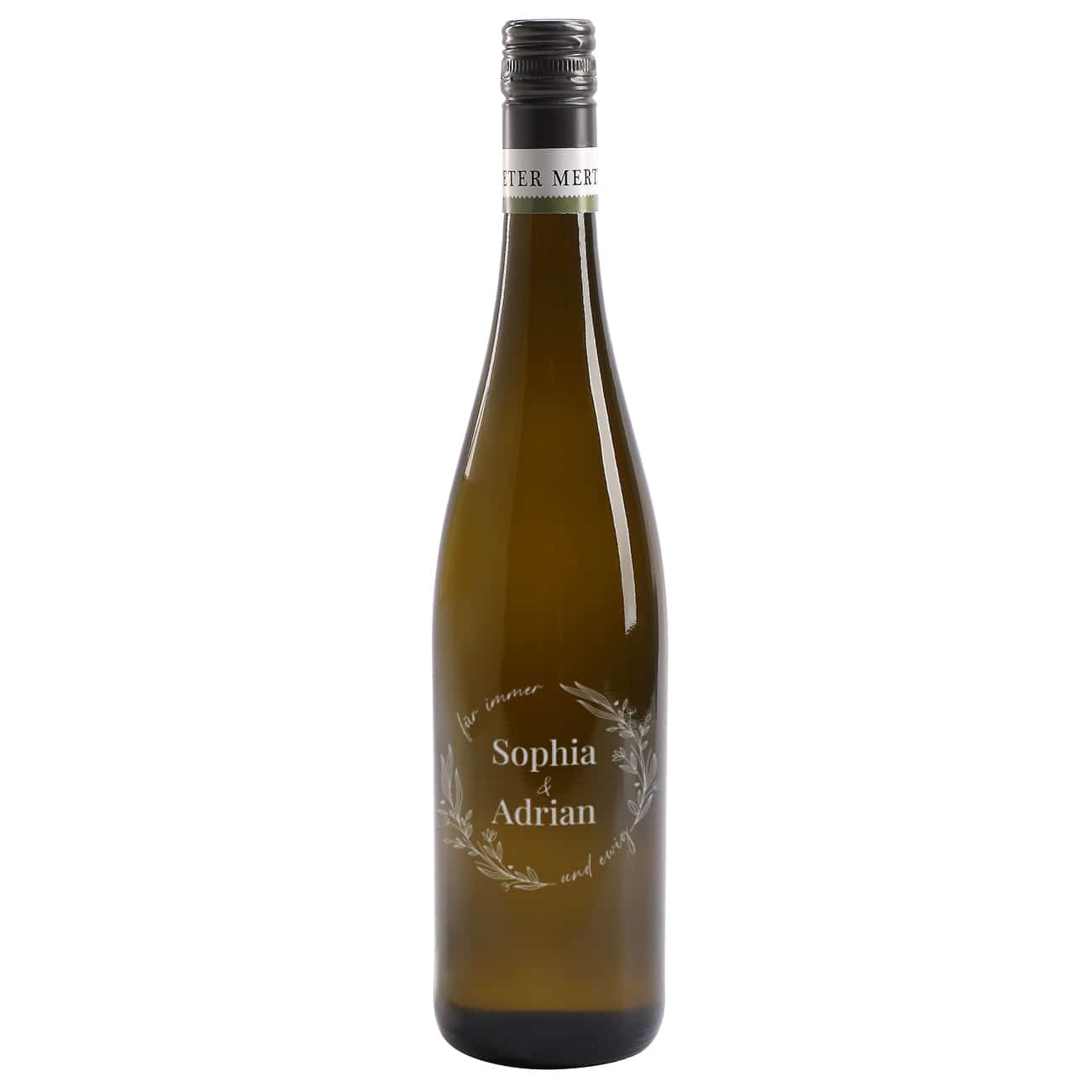 Für immer und ewig- gravierte Weinflasche zur Hochzeit mit Namen