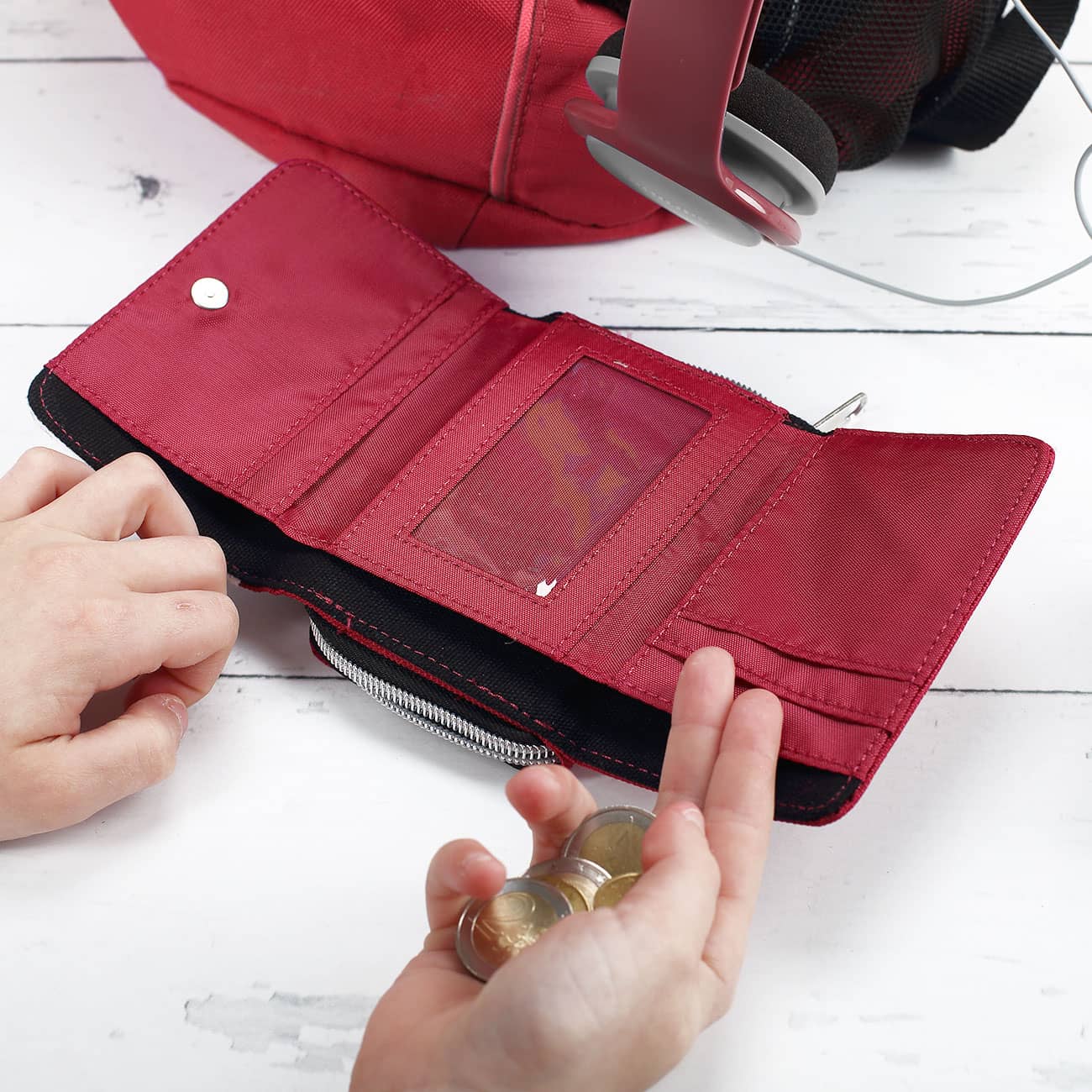 Die Geldbörse mit Jeansaufdruck kommt bei Mädchen und Jungen gut an. Sie wird mit einem Jeanshosen-Motiv und dem Namen des Kindes bedruckt. Dabei sieht der Name aus, als wäre er auf das Motiv gestickt. Das Portemonnaie besitzt unterschiedliche Fächer und wird in zwei Materialfarben angeboten.