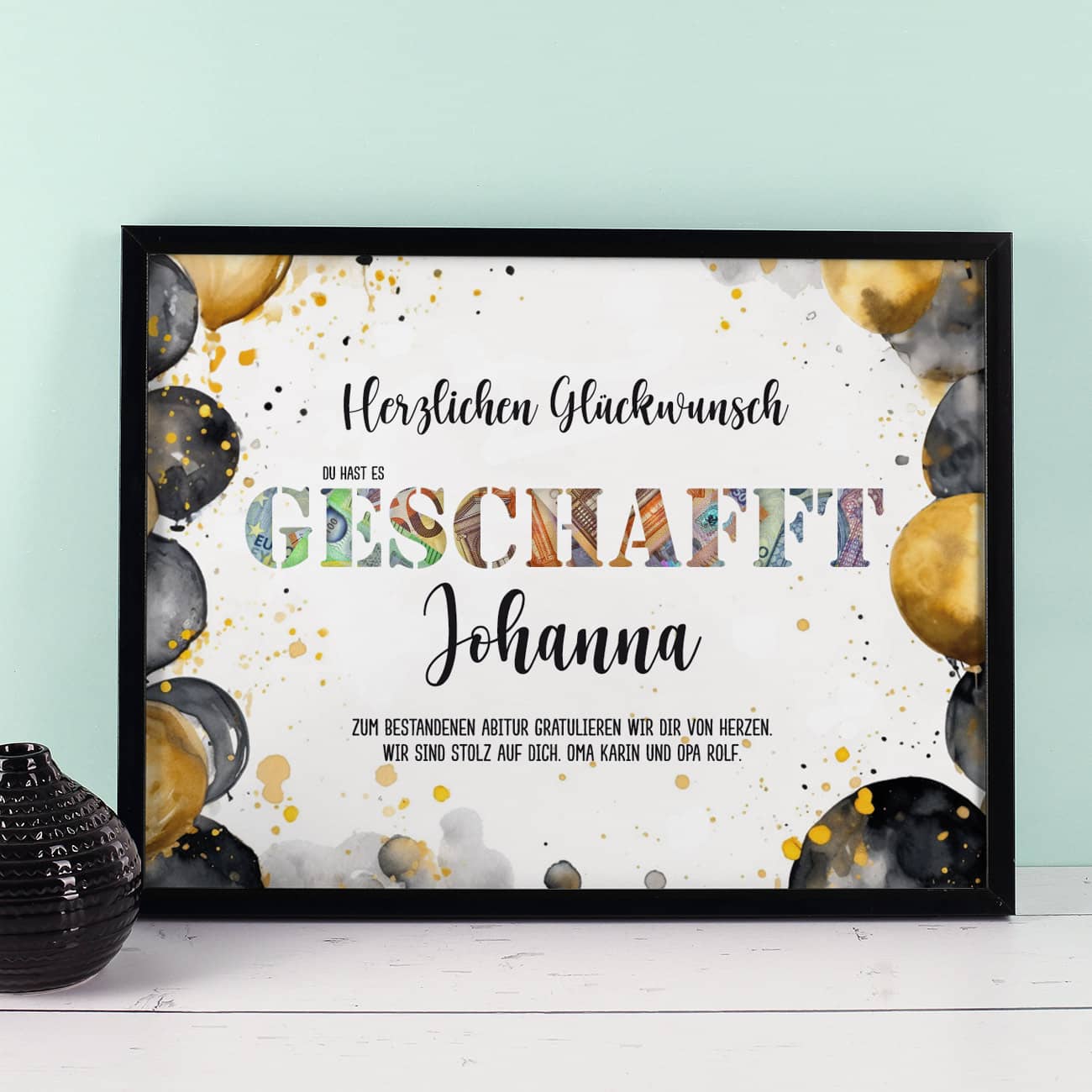 Bilderrahmen für Geldgeschenk zum erfolgreichen Abschluss