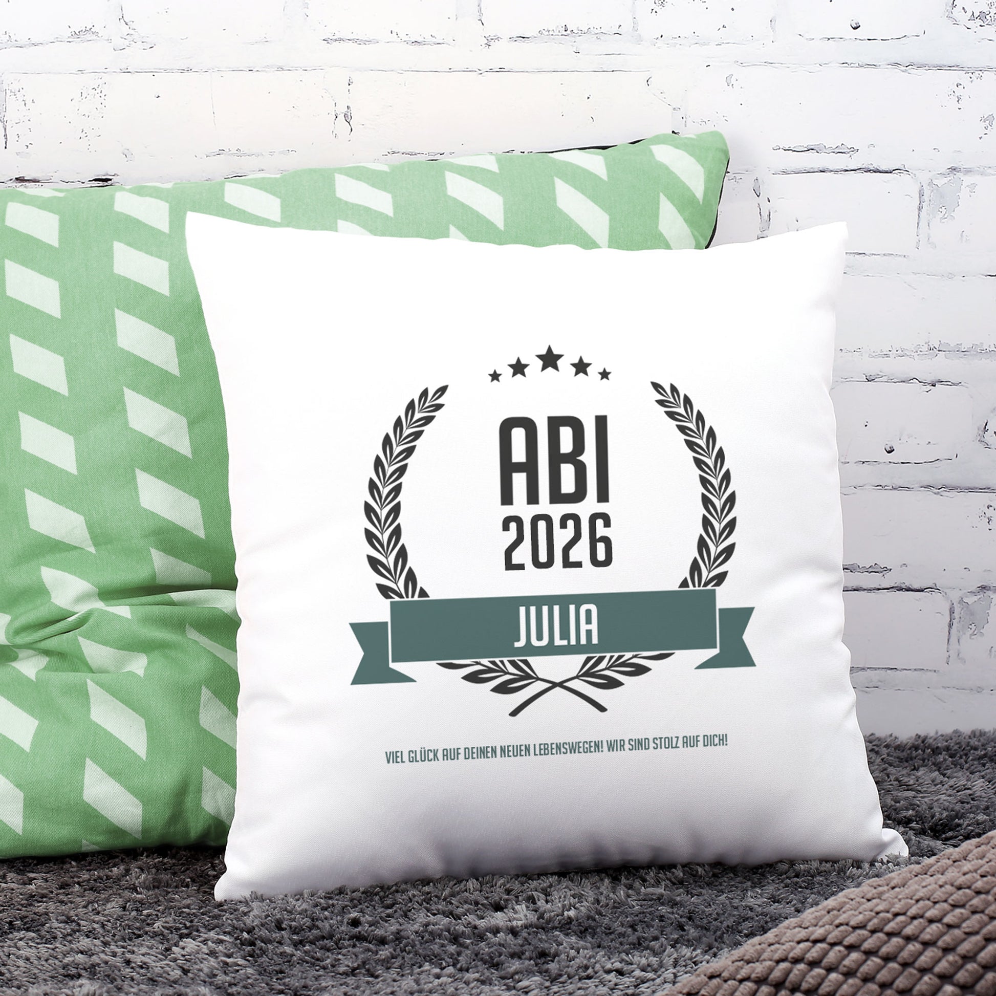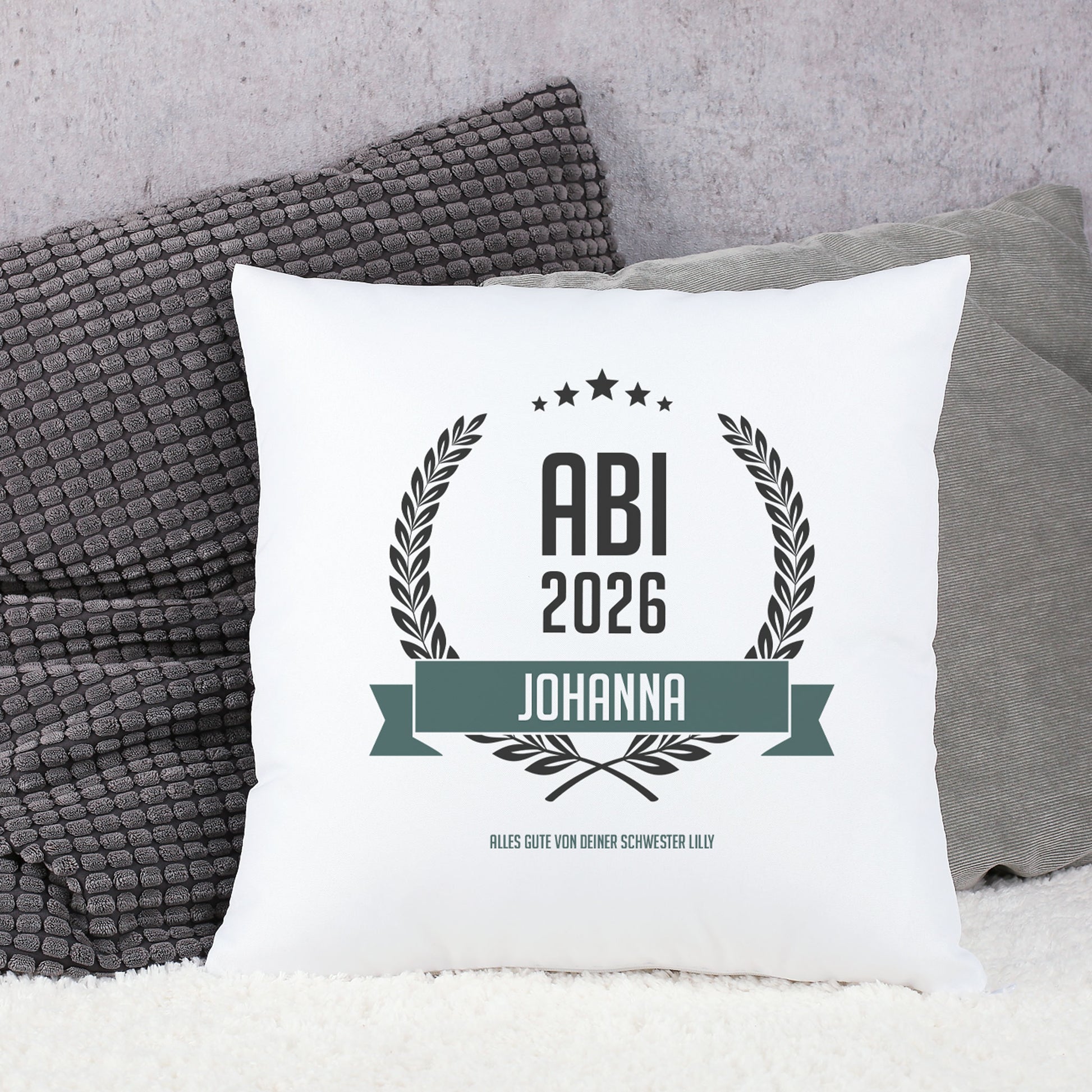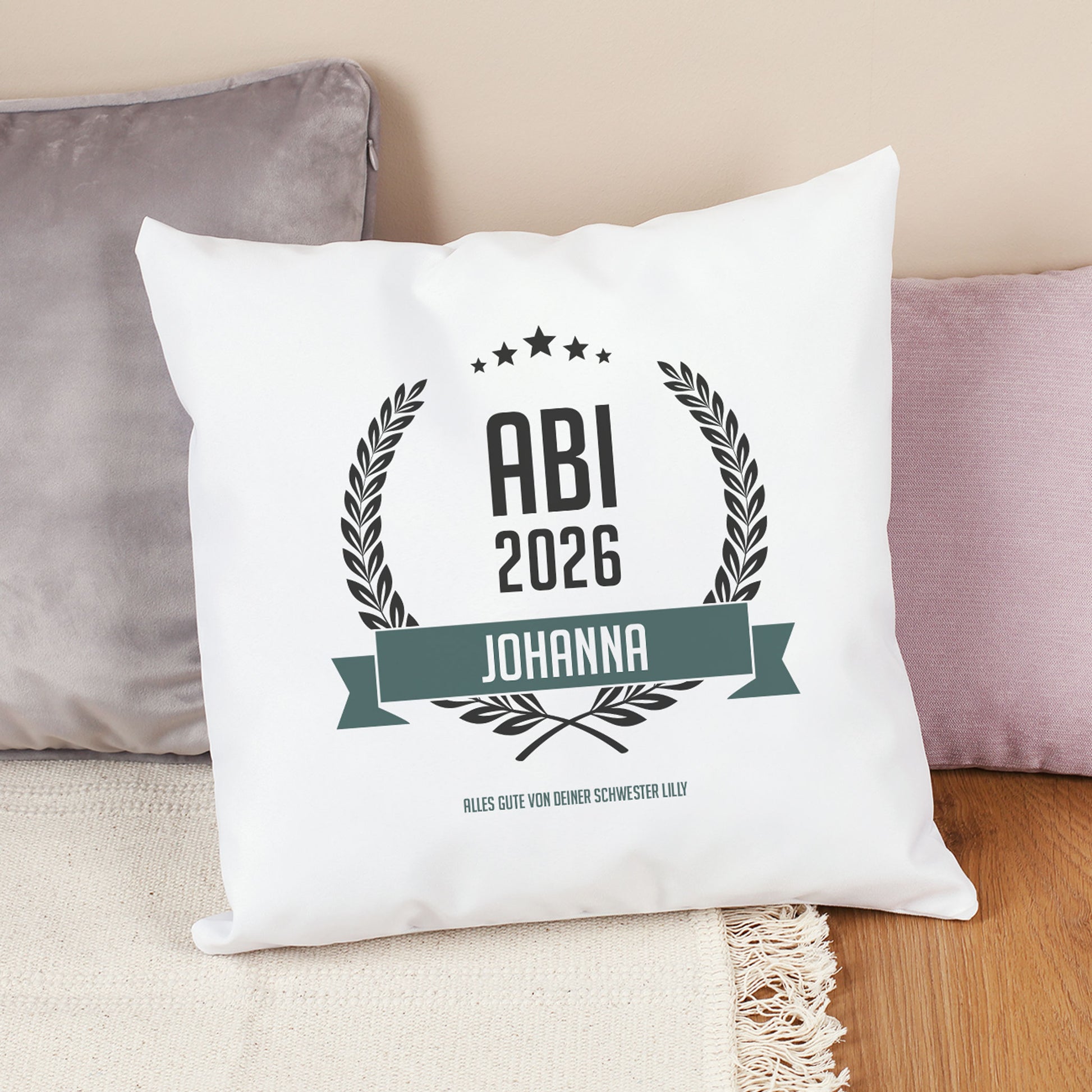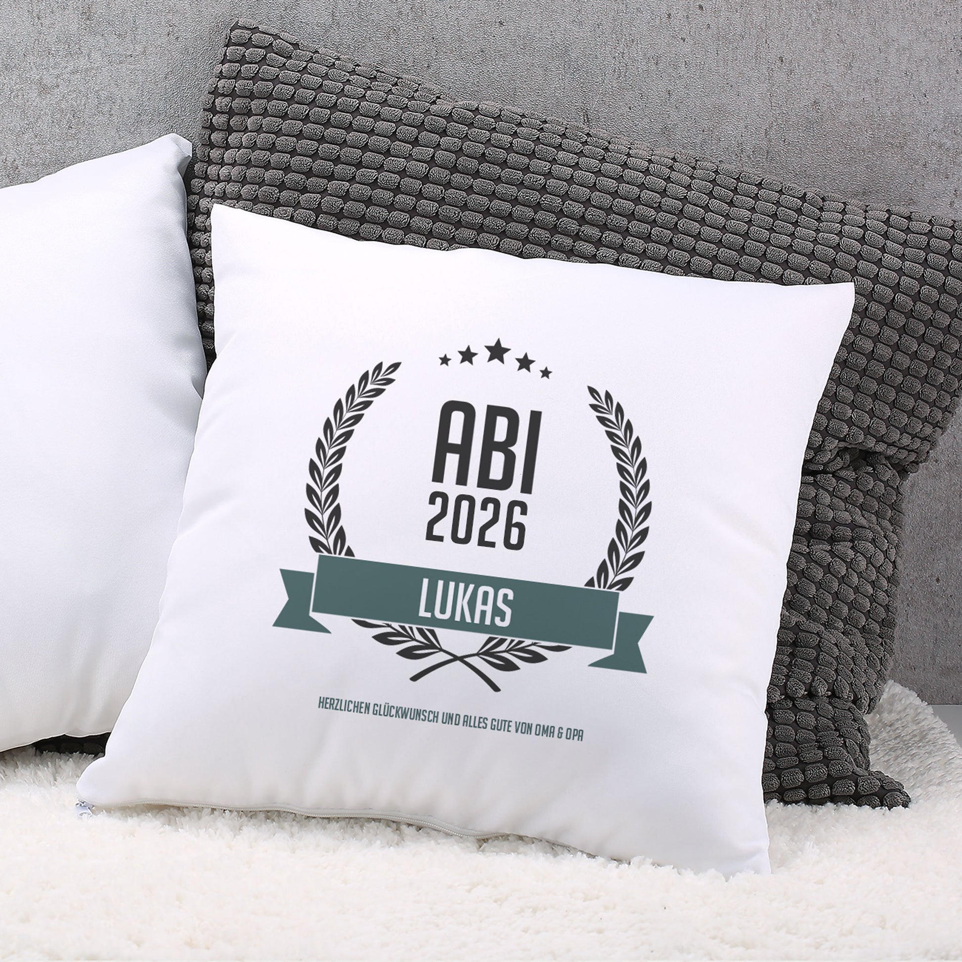 Glückwunsch-Kissen zum Abitur mit Name und Wunschtext