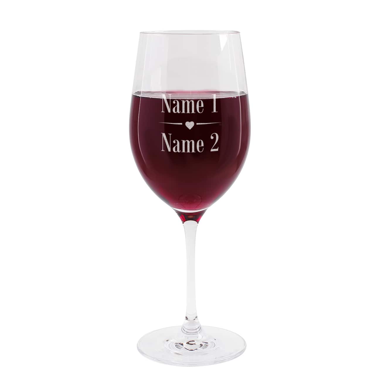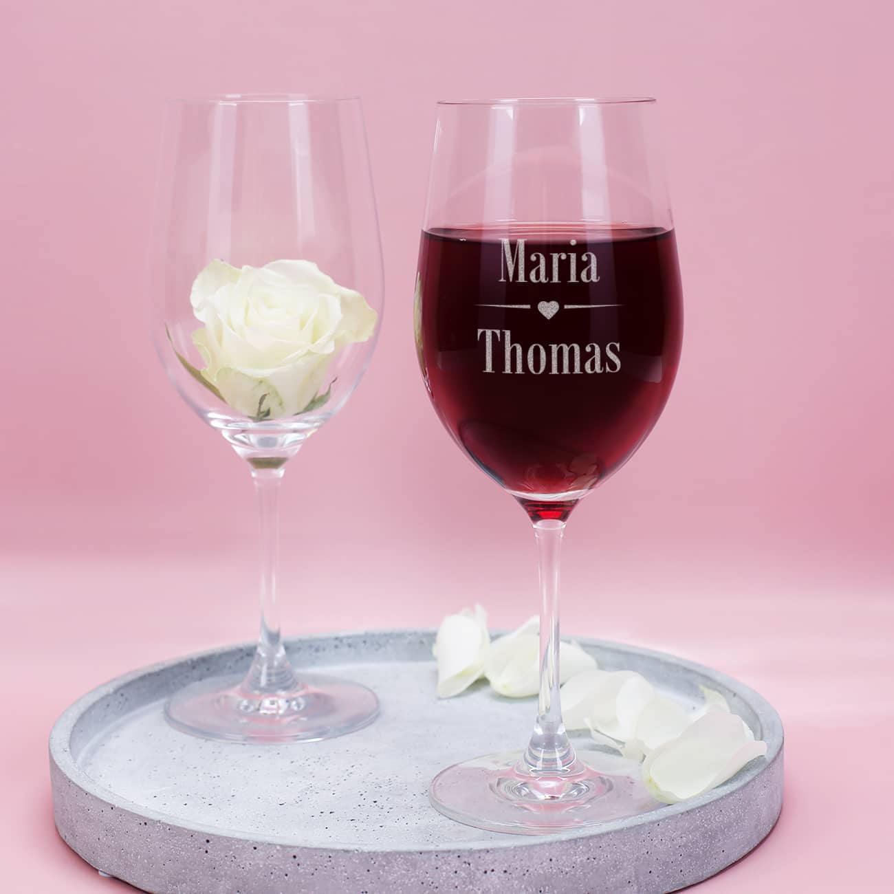 graviertes Leonardo Weinglas mit zwei Namen und Herz