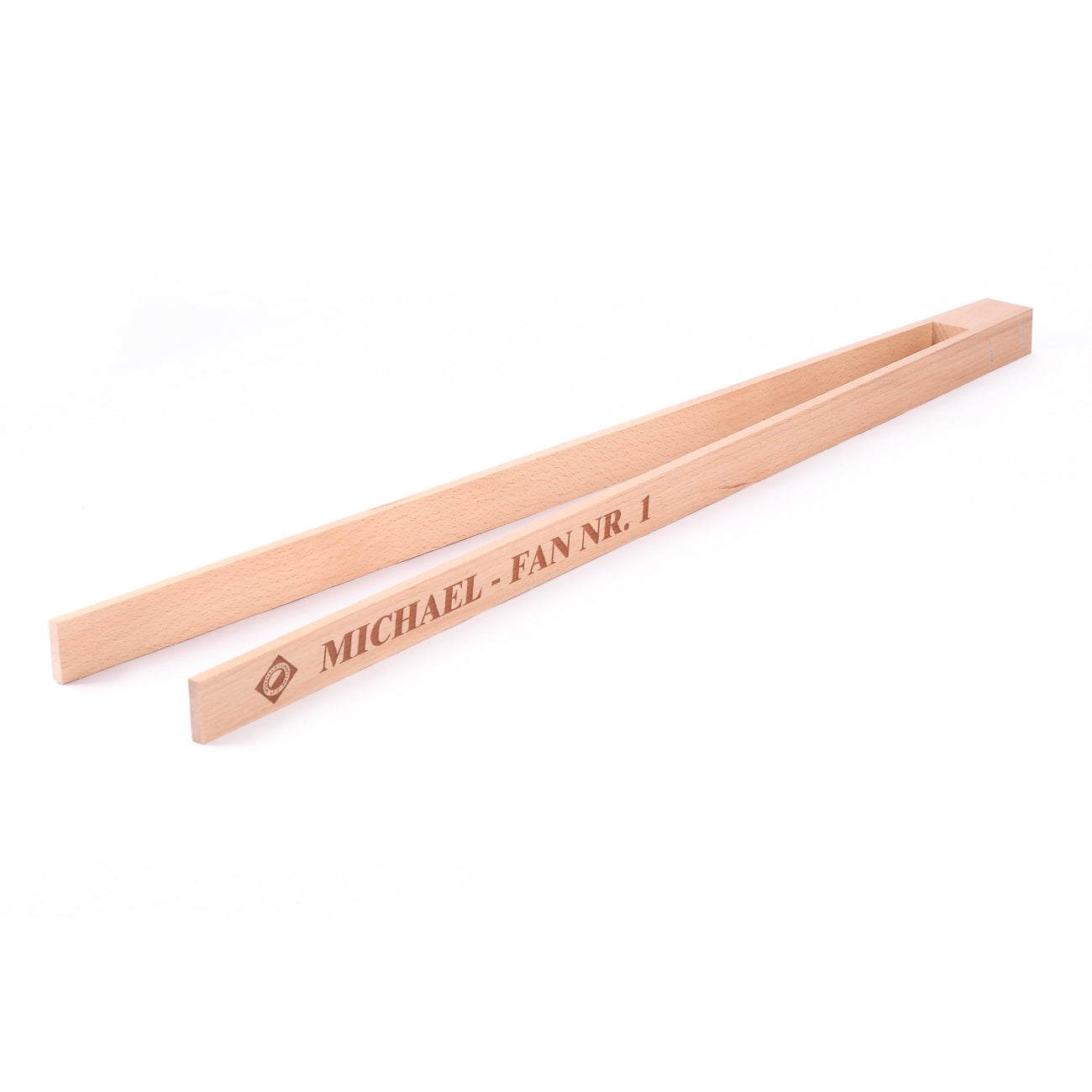 Die Grillzange ist aus naturbelassenem Holz gefertigt, liegt gut in der Hand und bietet eine sichere Handhabung – auch bei höheren Temperaturen. Durch die gelaserte Gravur mit Vereinslogo und Wunschtext wird jedes Exemplar zum echten Unikat und zum Hingucker am Grill.