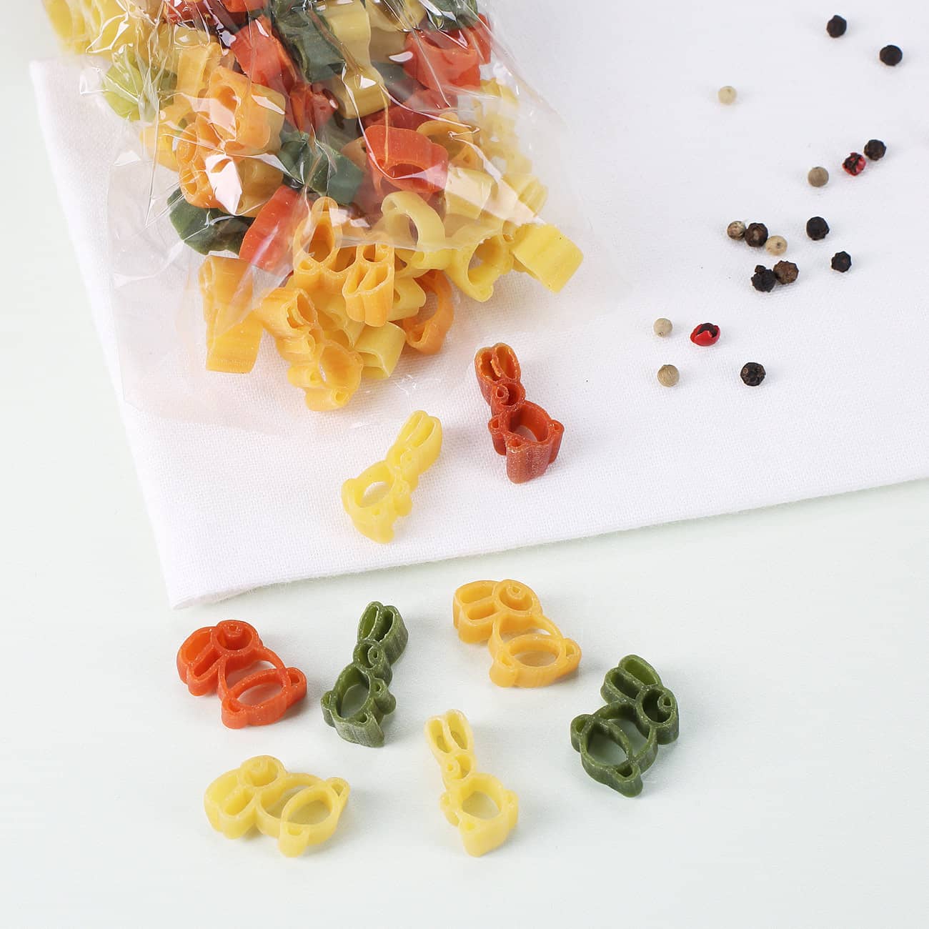 • Zutaten: Durum Hartweizen, Wasser, Nudeln rot/orange: Tomaten-, Paprika-, Karotten-, Rote-Beete-Pulver; Nudeln grün: Spinatpulver
