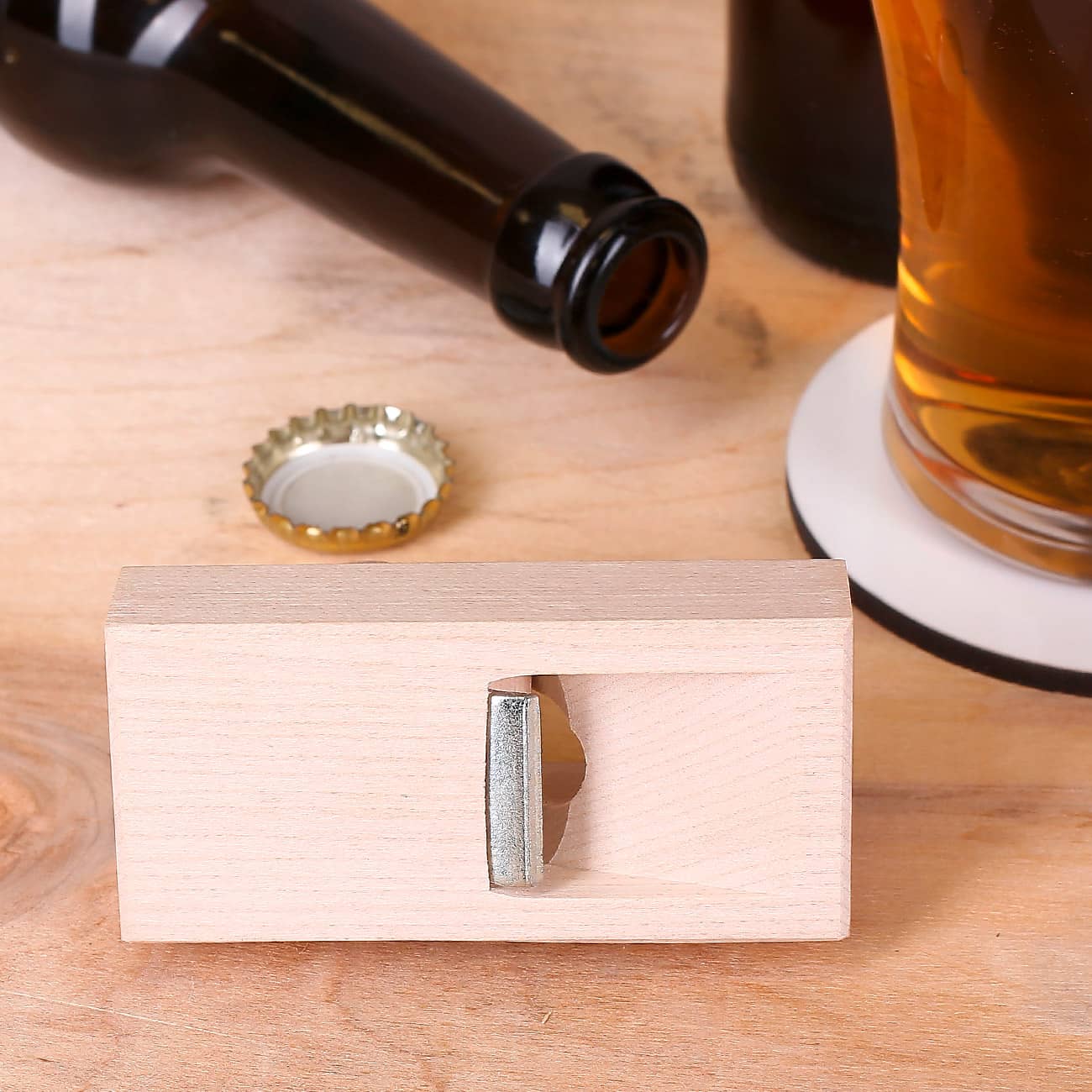 Der Flaschenöffner ist aus Buchenholz gefertigt und wurde nicht mit Ölen oder Chemikalien behandelt. Durch das langlebige Hartholz und der eingesetzten Metallklinge wird der oder die Beschenkte lange Freude an dem persönlichen und praktischen Flaschenöffner haben.