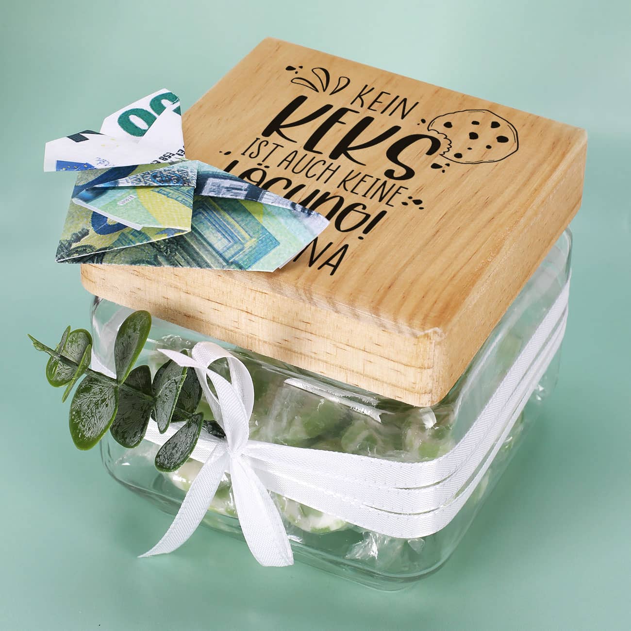 Keksglas mit Bambusdeckel personalisiert mit Name