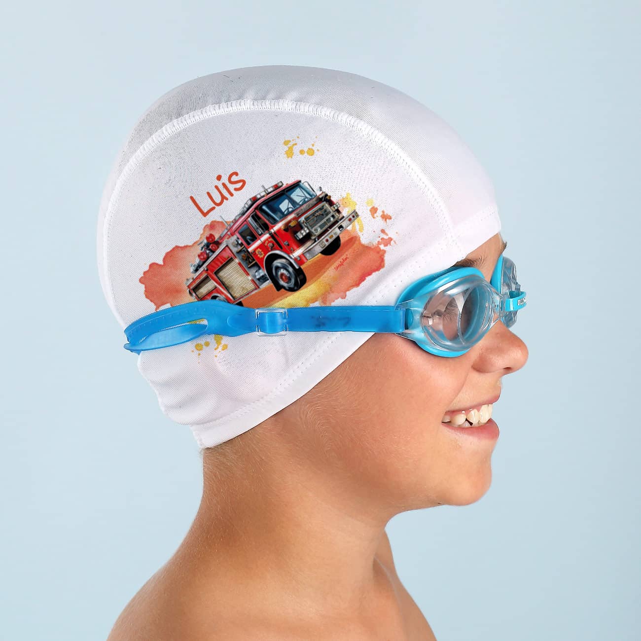 Personaliserte Badekappe für kleine Feuerwehrfans