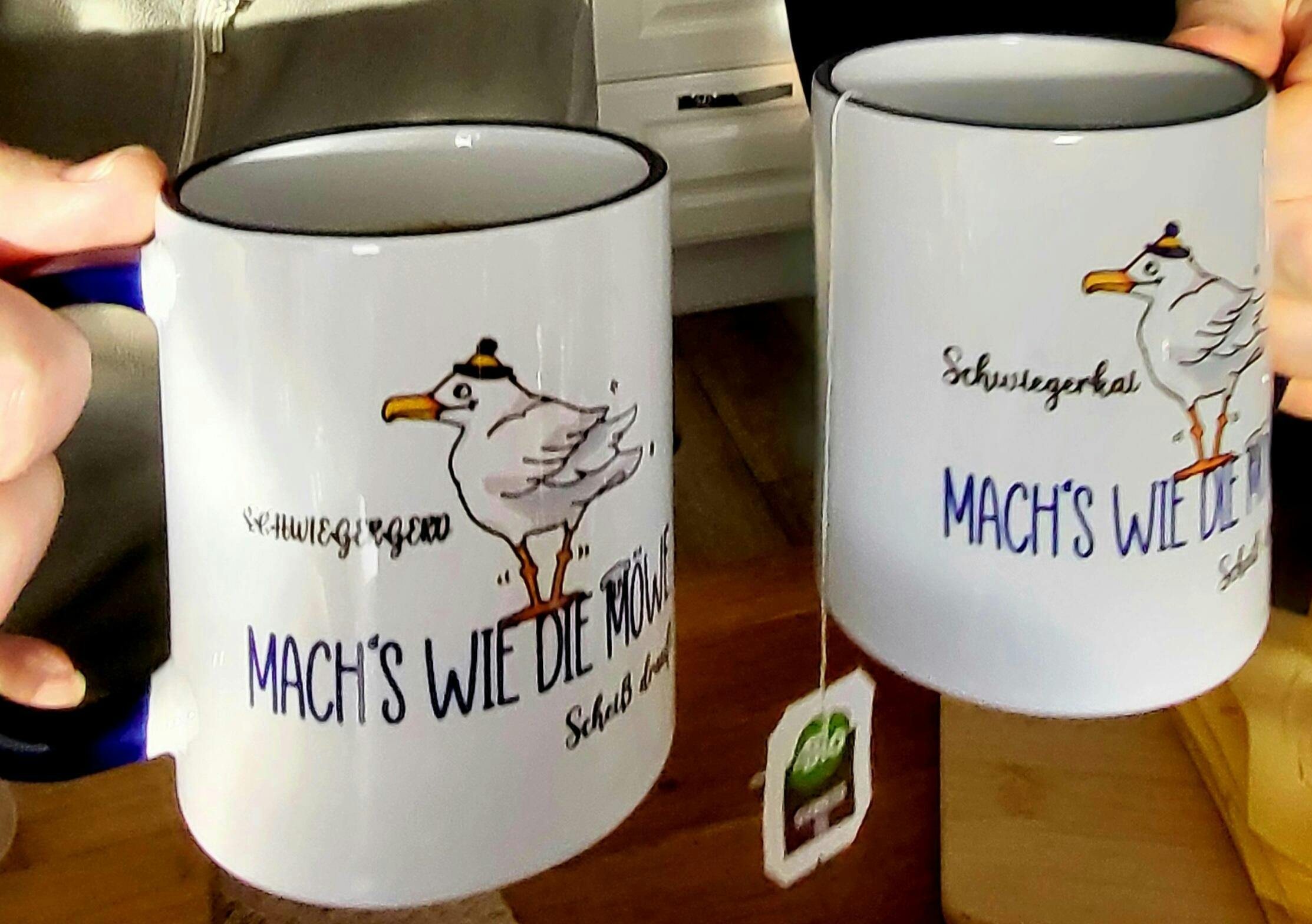 Diese Möwentasse eignet sie sich bestens als Geschenk für jeden Ost- und Nordseefan. Sie ist ein toller Blickfang auf dem gedeckten Frühstückstisch sowie auf dem Schreibtisch im Büro. Menschen, die einen maritimen Einrichtungsstil mögen, werden von dieser Tasse mit lustigem Spruch begeistert sein. Mit ihrem Aufdruck: Mach's wie die Möwe... Scheiß drauf! ist sie auch für gestresste Menschen ein toller Botschafter, um die Dinge mal etwas lockerer zu sehen.