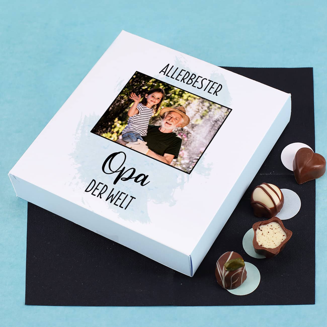 Diese Lindt Pralinen sind in einer personalisierten Verpackung verpackt, die sie entweder in Rosa oder Hellblau bestellen können und demnach für Männer und für Frauen geeignet ist. Hauptsache ist, dass die Person an die Sie dieses schöne individuelle Präsent verschenken, in Ihren Augen der Allerbeste oder die Allerbeste auf der Welt ist! Beispielsweise der Allerbeste Bruder, die Allerbeste Freundin, Der Allerbeste Opa, der Allerbeste Ehemann, die Allerbeste Mutter und so weiter. Hier können Sie frei Ihren Text nach Wunsch an die Person anpassen, die dieses Geschenk von Ihnen erhält. Und als wäre das nicht schon besonders und einfallsreich genug, wählen Sie noch ein Foto aus, welches ebenso auf den Deckel der Pralinenschachtel gedruckt wird! So ein schönes Geschenk vergisst man nicht so schnell.