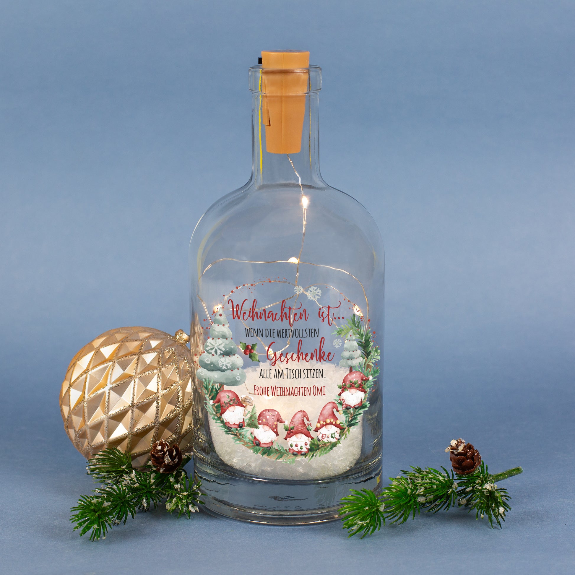 • inkl. warmweißer LED-Lichterkette im Korken