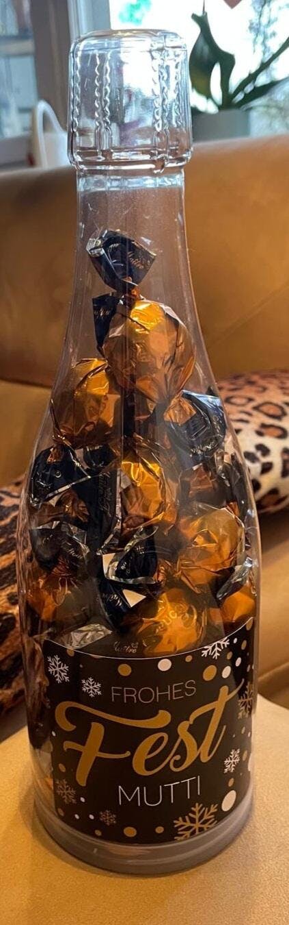 Diese Pralinenflasche ist eine außergewöhnliche Geschenkidee und eine tolle kleine Aufmerksamkeit zum Weihnachtsfest, mit welcher Sie garantiert jedem ein Lächeln auf die Lippen zaubern.