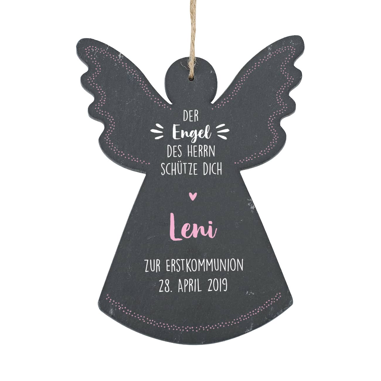 Schutzengel aus Schiefer für Mädchen bedruckt zur Taufe oder Kommunion