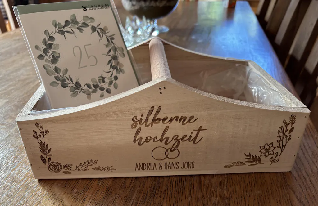 Gravierter Pflanzkorb zur Silbernen Hochzeit