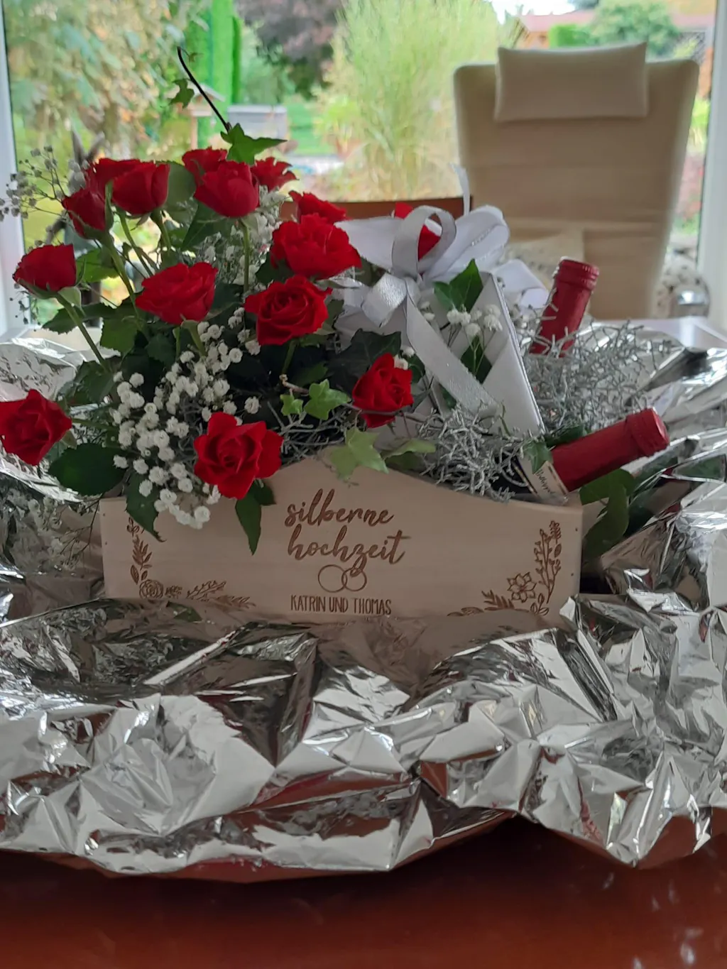 Pflanzkorb zur silbernen Hochzeit mit Gravur
