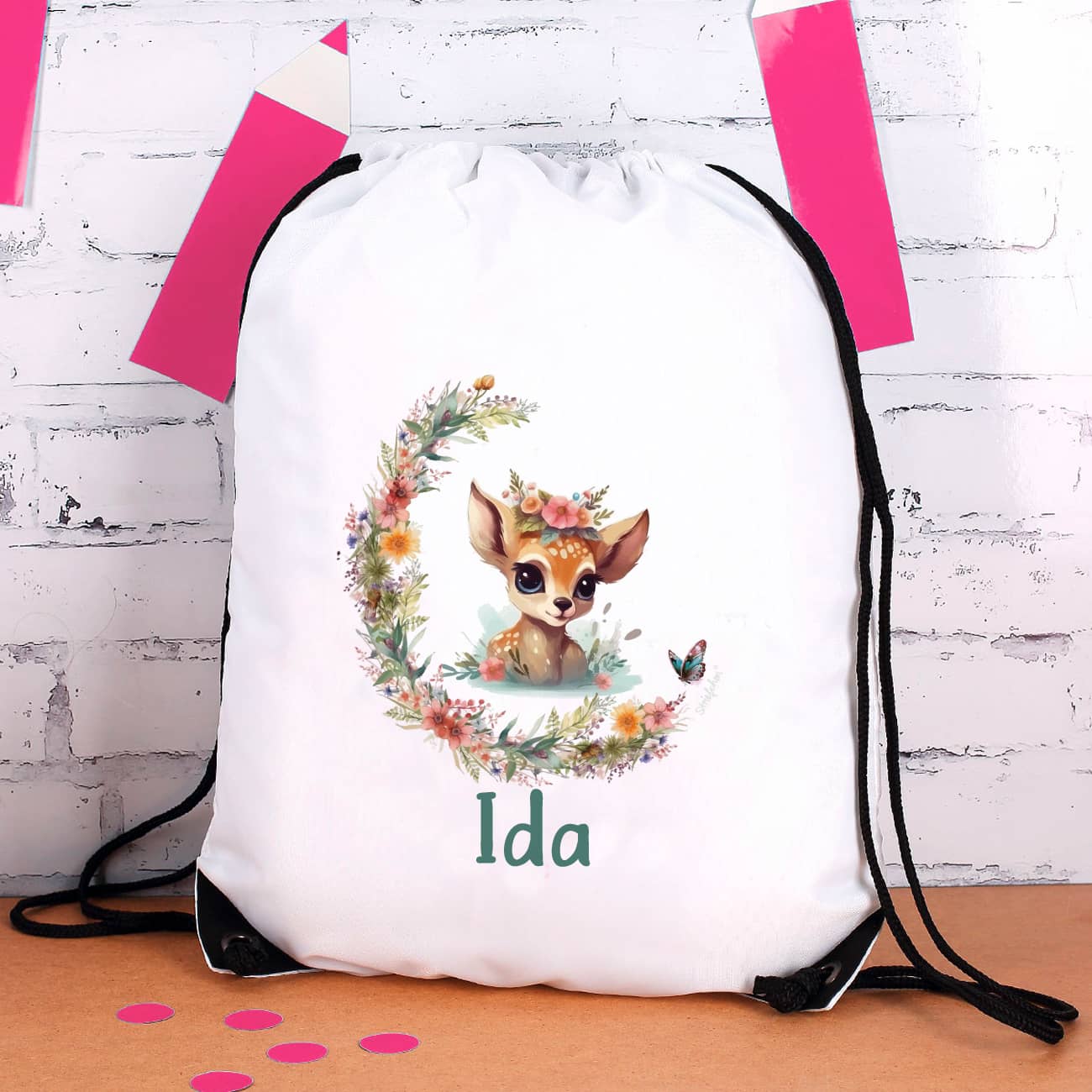 Sportbeutel mit Rehkitz & Name bedruckt
