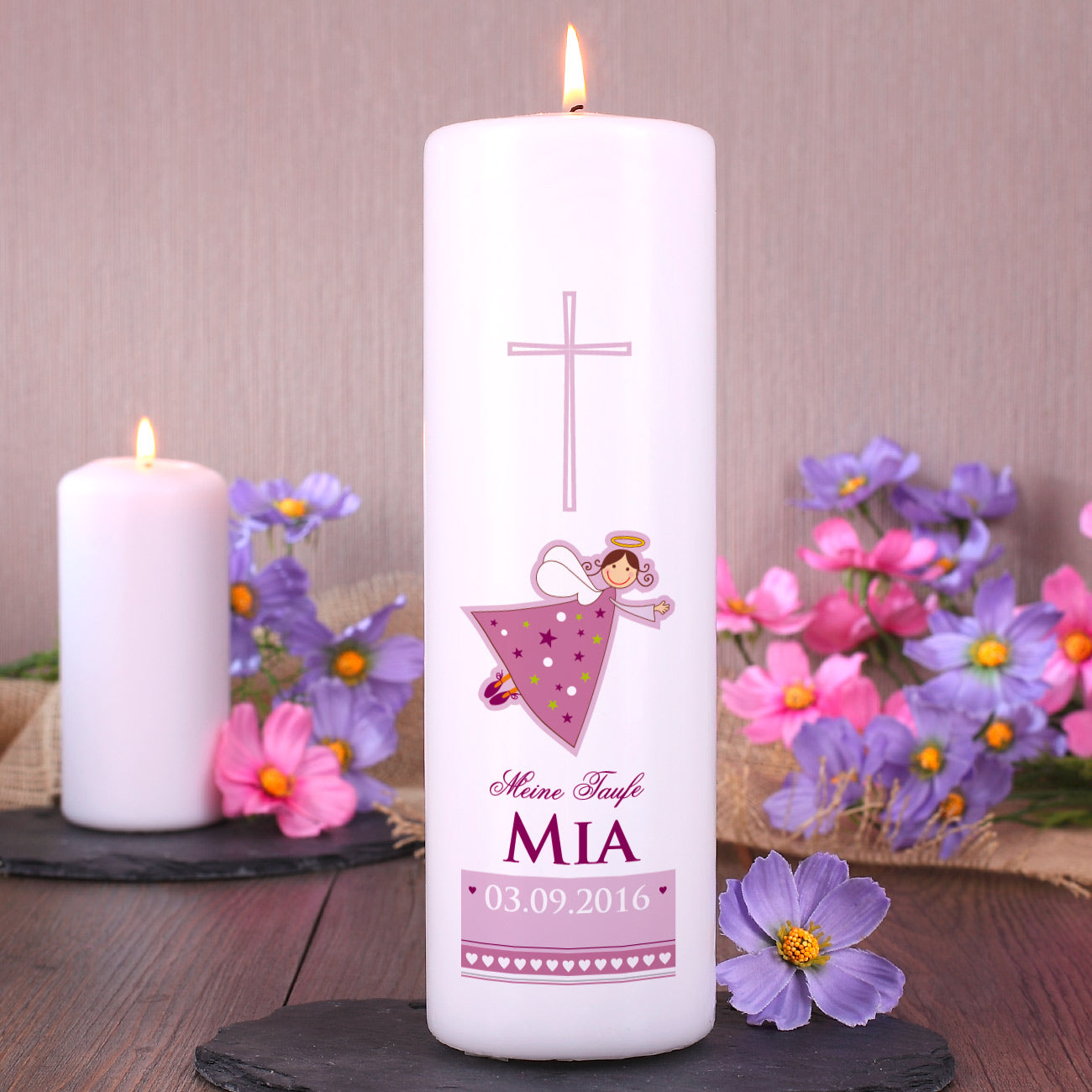 Tolle Schutzengel Taufkerze für Mädchen