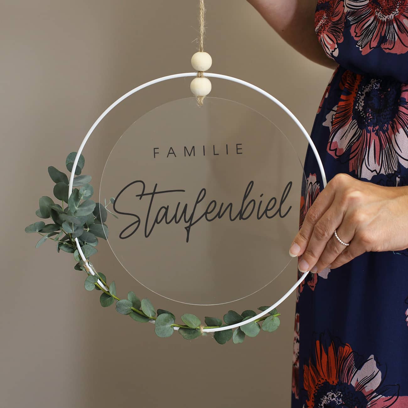 - Individuell personalisierbar: Das Acrylschild kann mit dem Familiennamen bedruckt werden, um eine persönliche Note zu verleihen.