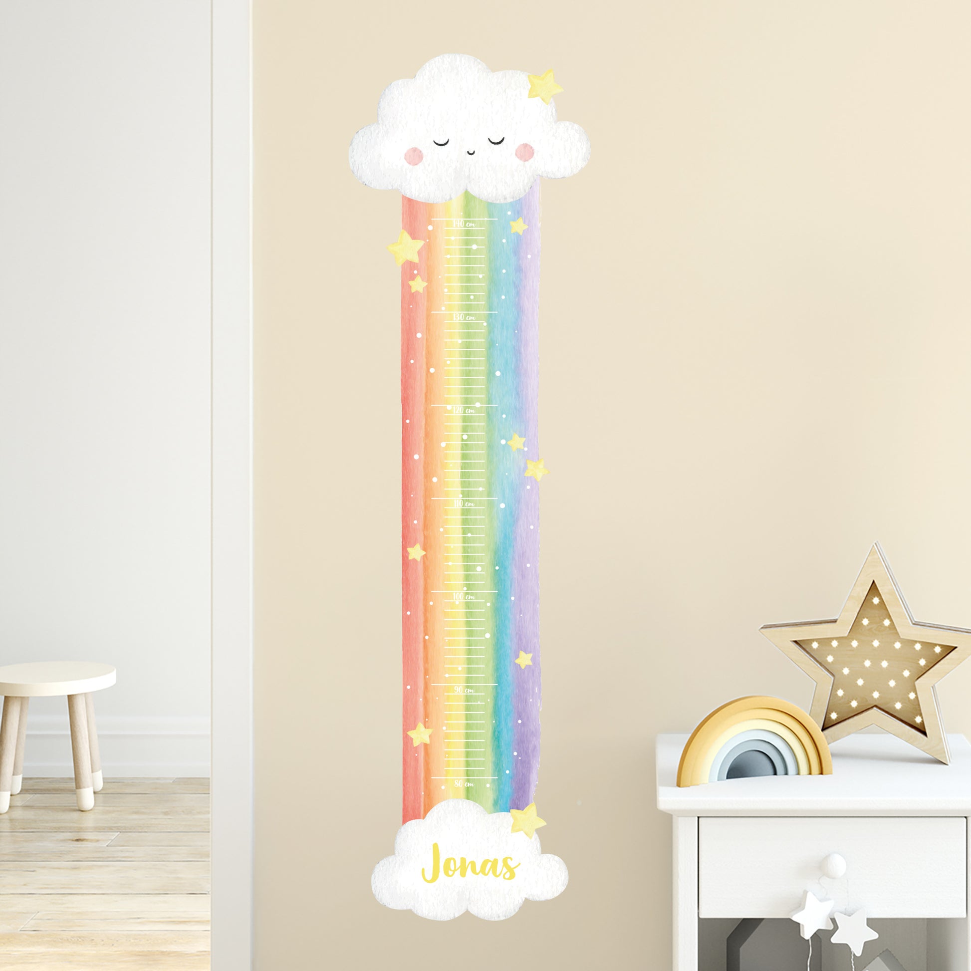 Wandtattoo Messlatte Regenbogen mit Namensaufdruck für Kinderzimmer