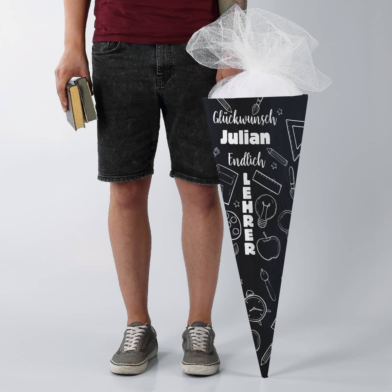 Schultüte „Endlich Lehrer“ – Personalisierte Zuckertüte für Erwachsene